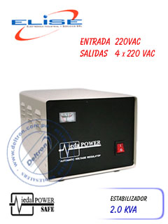 Estabilizador Monofasico ELISE IEDA PODER SAFE, LCR20-4.5%, Solido, 2kVA, 220VAC, 4 T